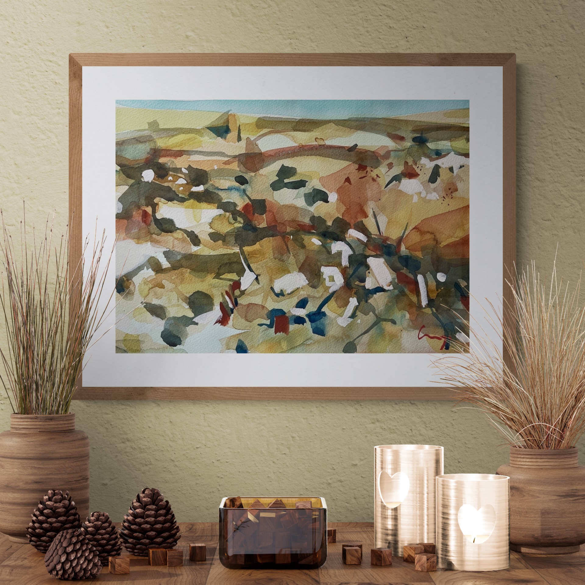 A beautiful piece from the hills, plains and mountains of the Snowy Monaro. Framed in natural Australian oak, this original artwork offers a refined and contemporary presence, ideal for collectors seeking balance and expressive simplicity.