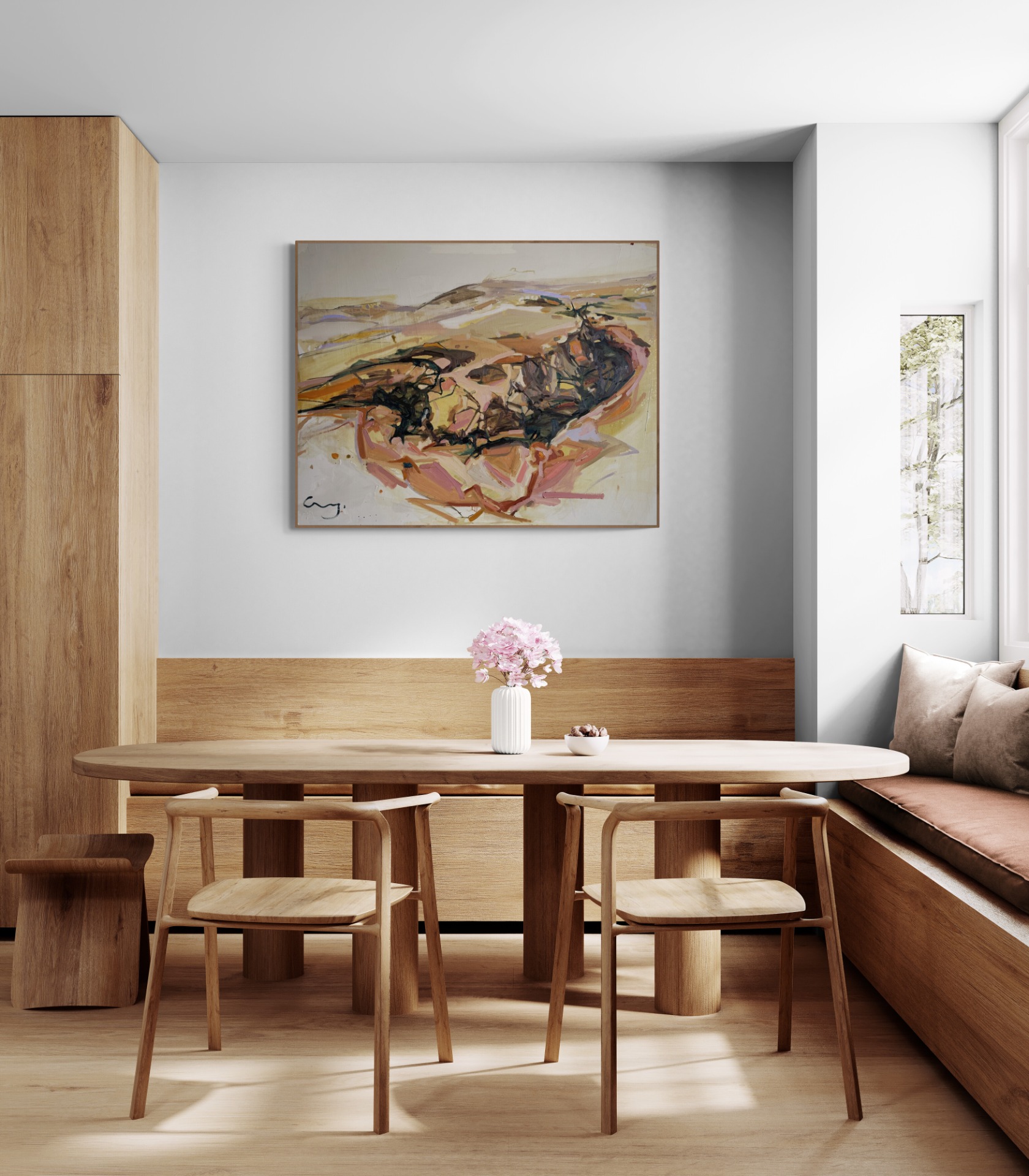 These selected paintings work well as a focal point in neutral or material-driven interiors.