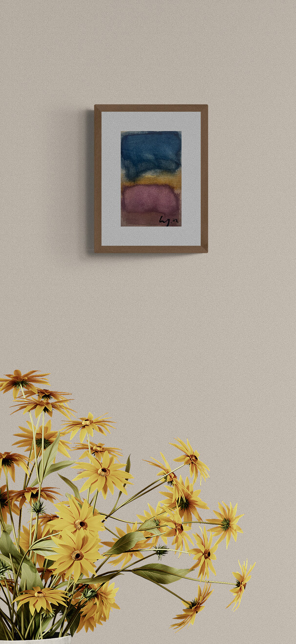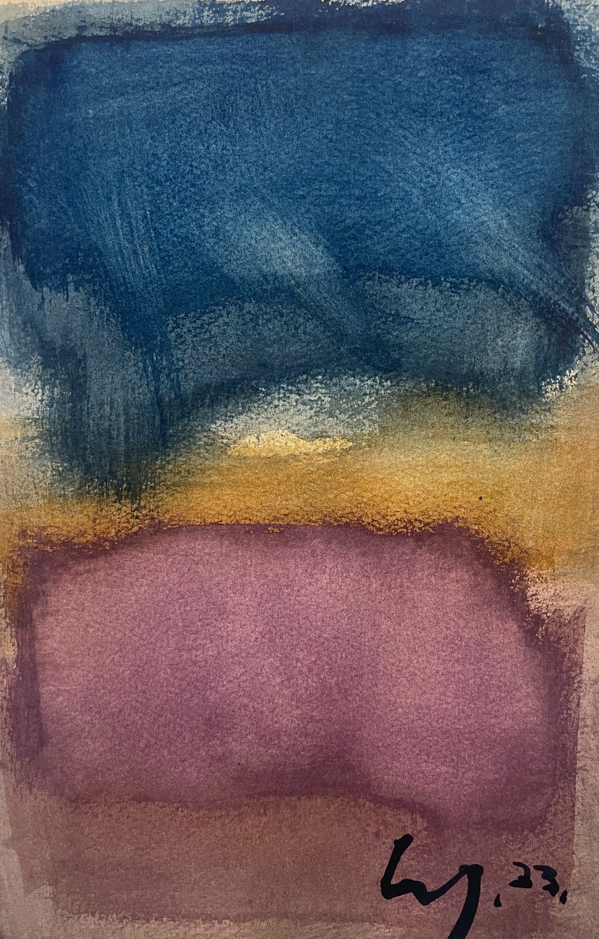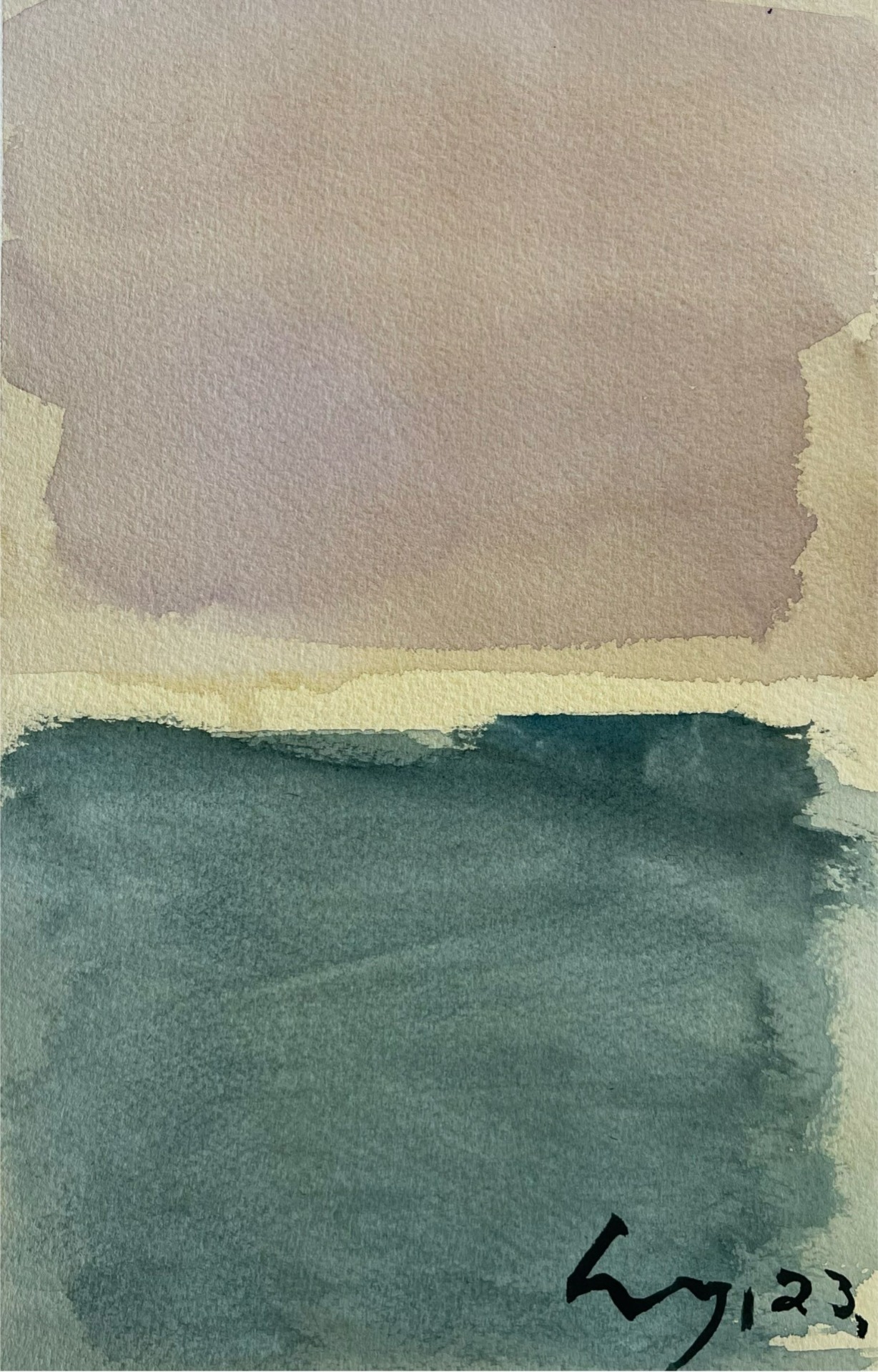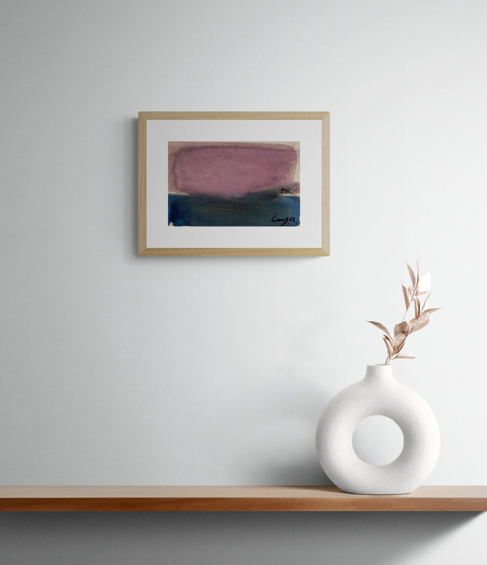 "Violet Cloud" features soft purple hues layered with watercolour and gouache, creating a calm and dreamy abstract landscape.